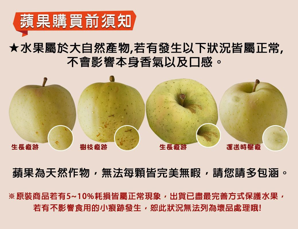 水果為天然農產品,無法像加工食品控管每顆水果內部都完好或相同味道,川太鮮果也無法一顆顆切開再寄給消費者,僅能從外觀為您篩選, 不能接受者請勿下單。
